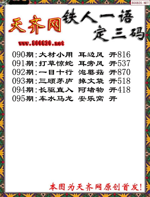 095期3D铁人一句定三码字图谜