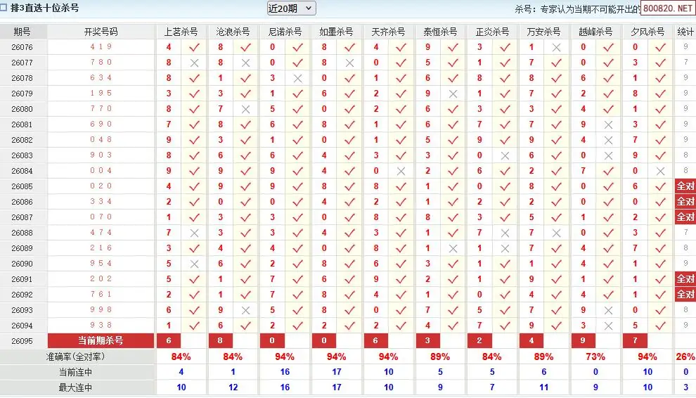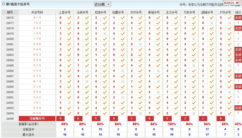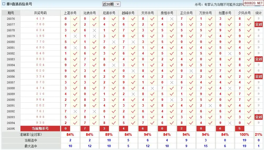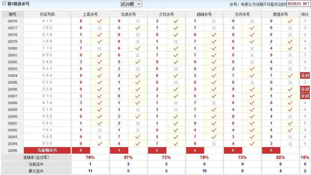 澳客彩票26年体彩P3095期十大大专家杀号