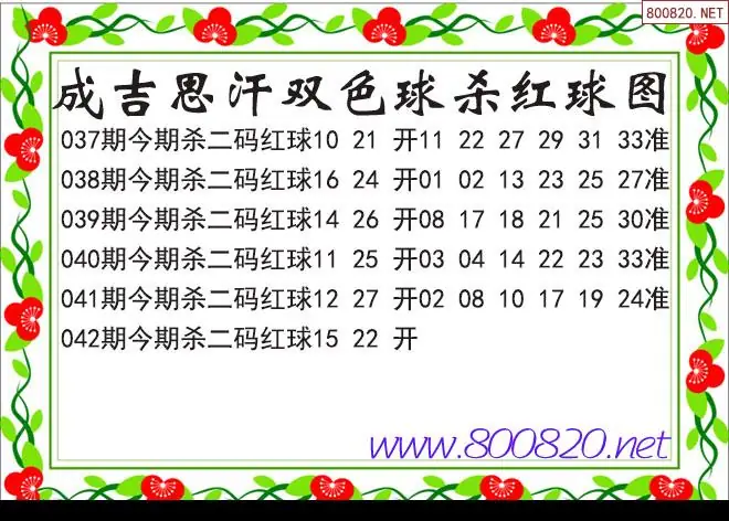成吉思汗26年042期双色球杀红球图谜