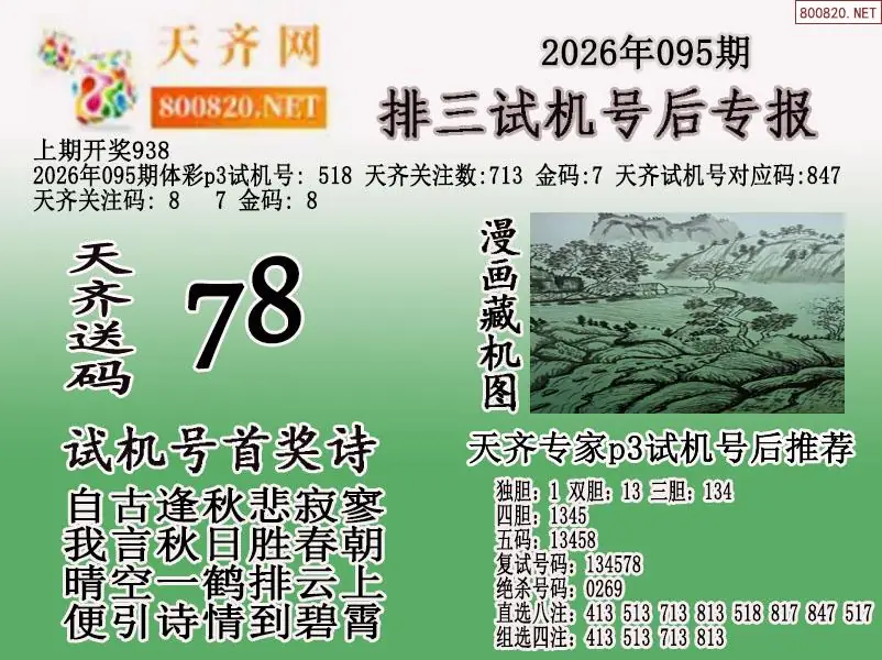 2026年095期体彩p3试机号后天齐网专报