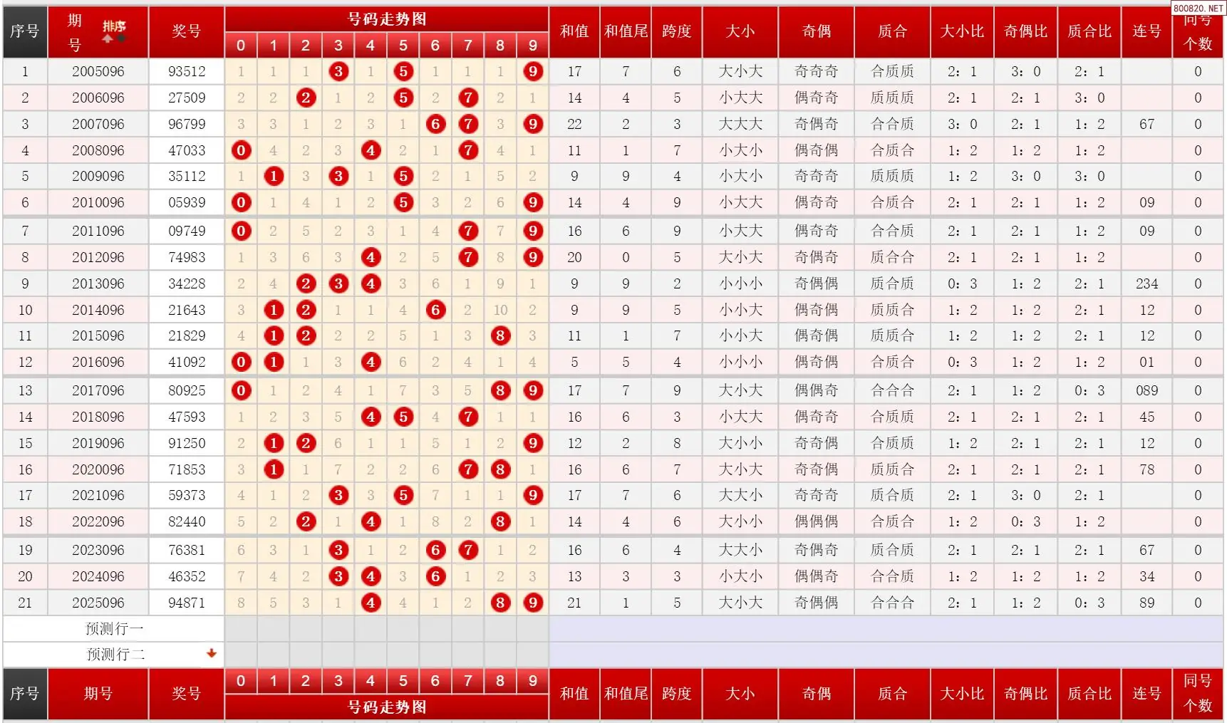 3 096期体彩P3历史同期对比图表+近期