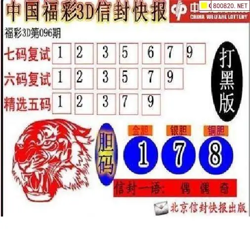 信封图26096期信封快报3d打黑版图谜