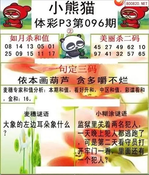 26096期体彩P3小熊猫图迷