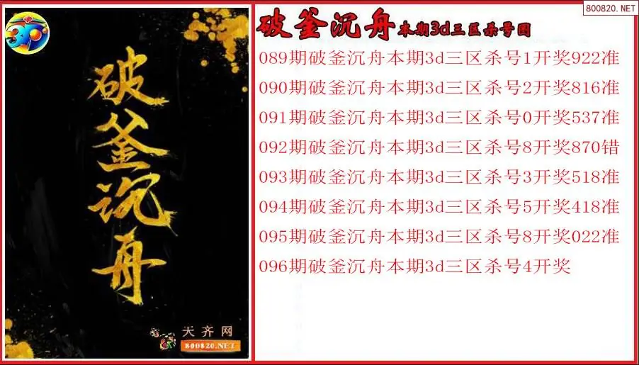 破釜沉舟2026096期本期3d三区杀号图(原创)