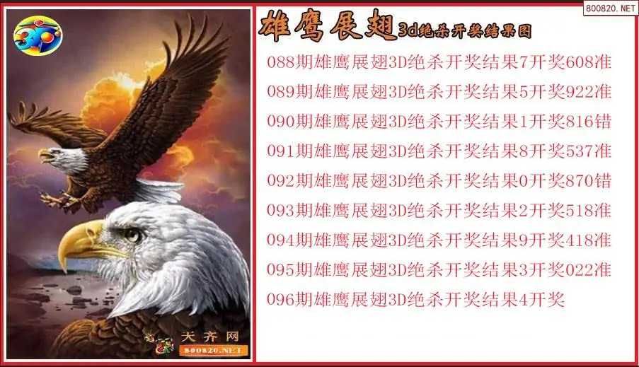 雄鹰展翅2026096期3d绝杀开奖结果图(原创)