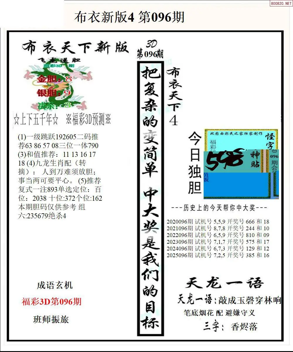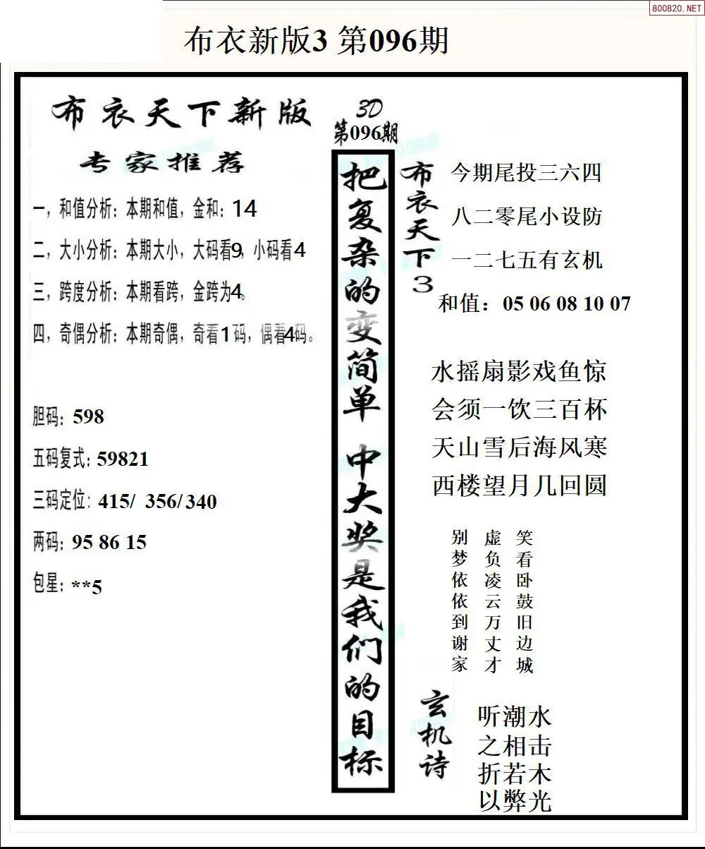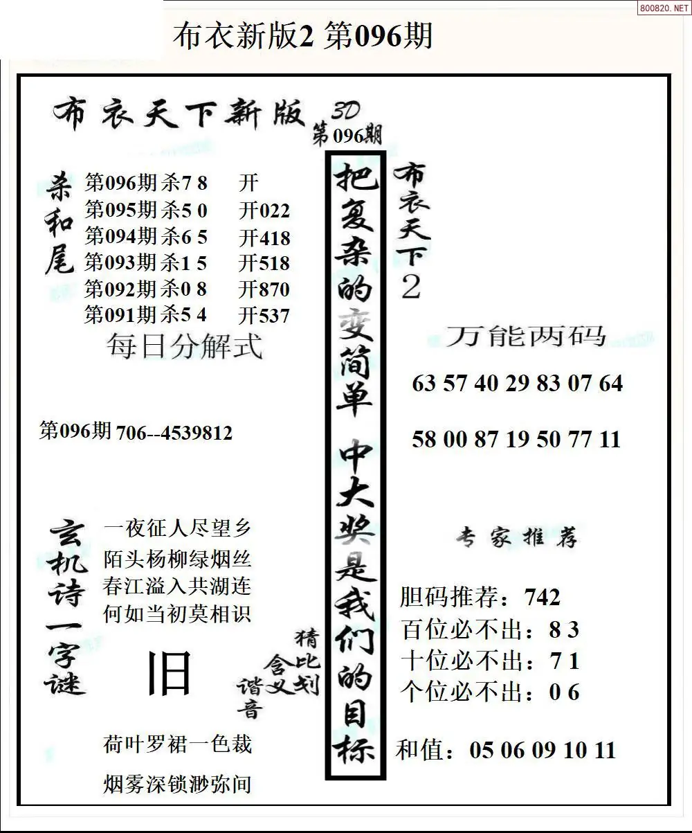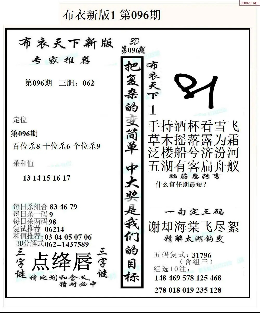 26096期新版3d布衣天下1234