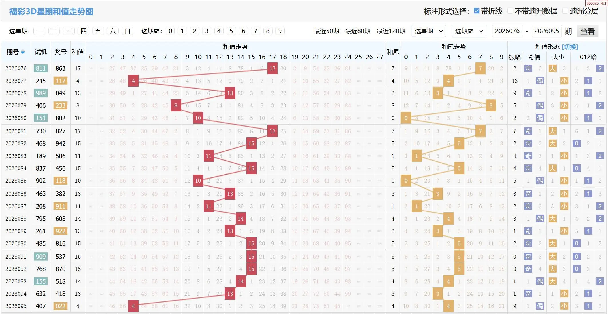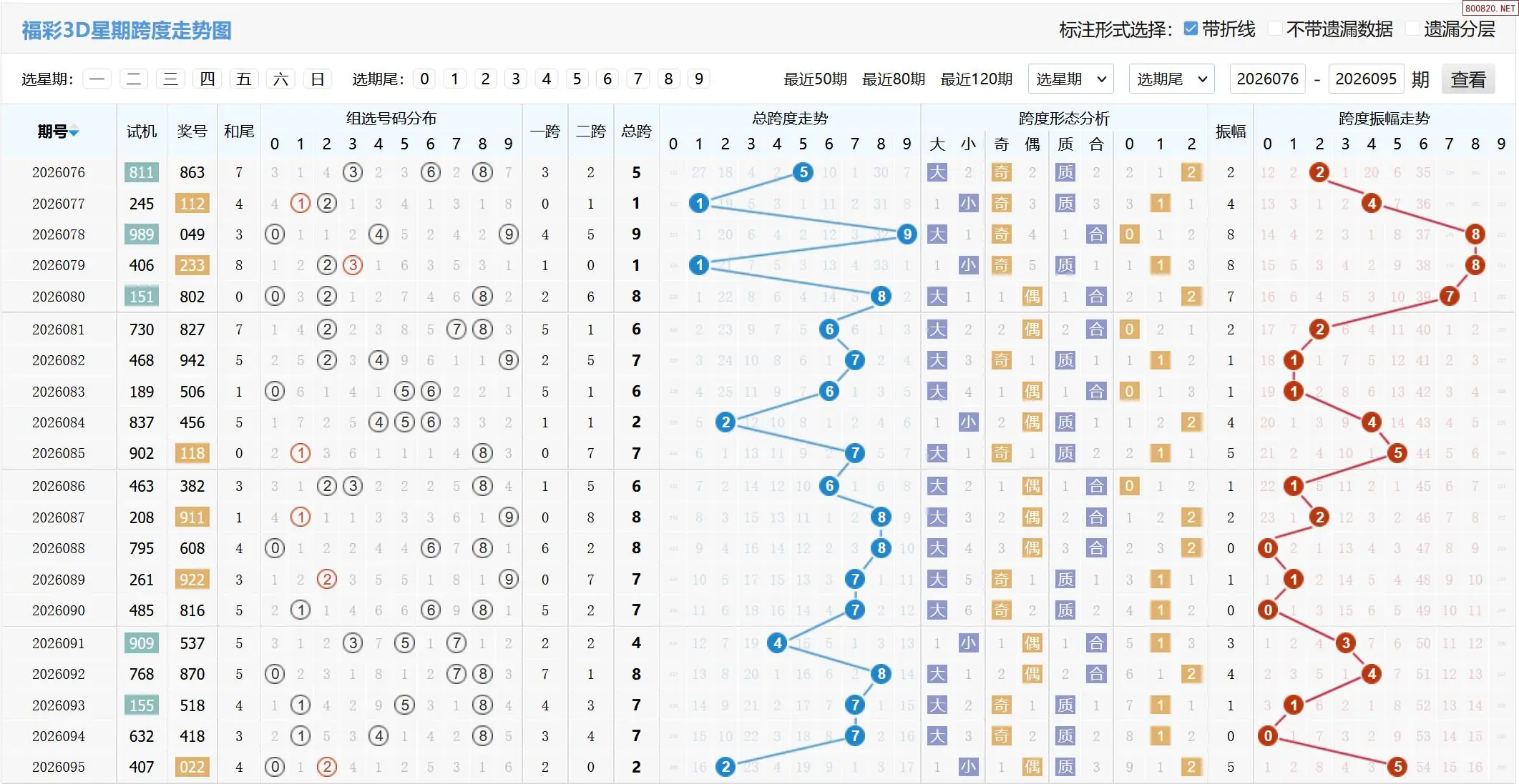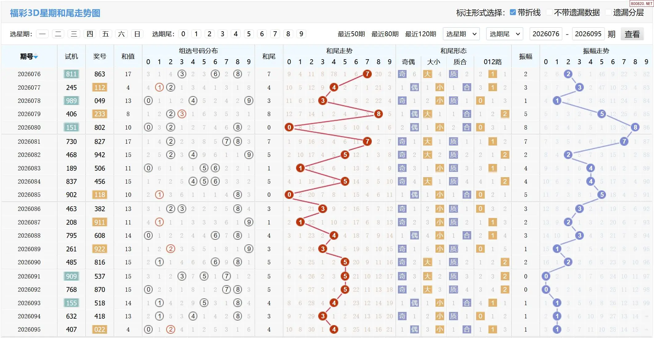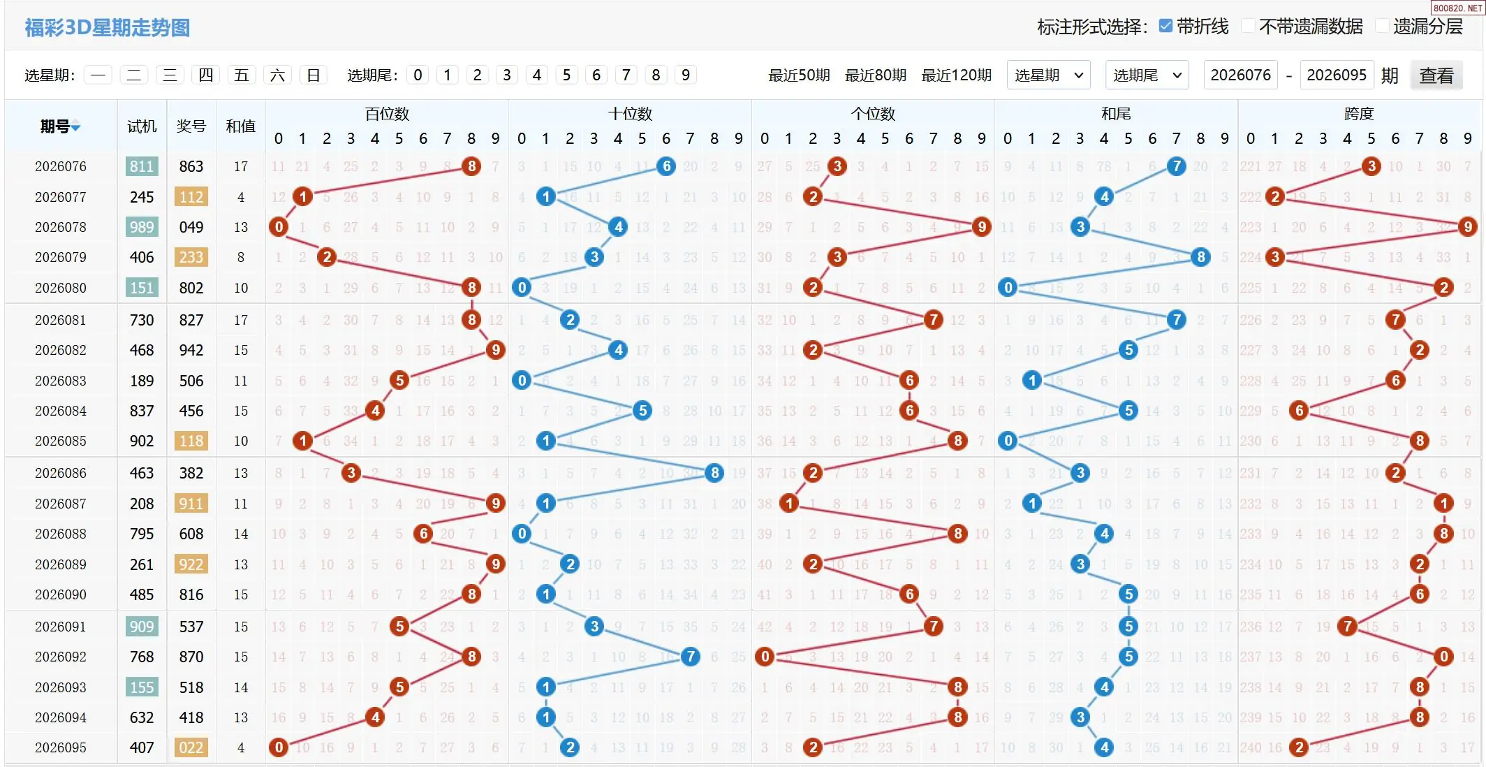 2026096期福彩3D基本走势图如下:
