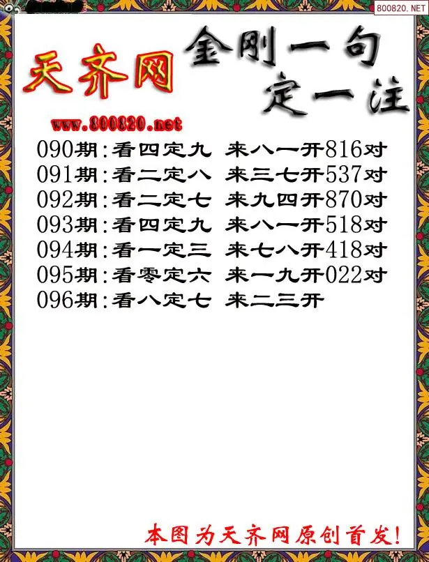 096期3D福彩金刚一句定三码字图谜