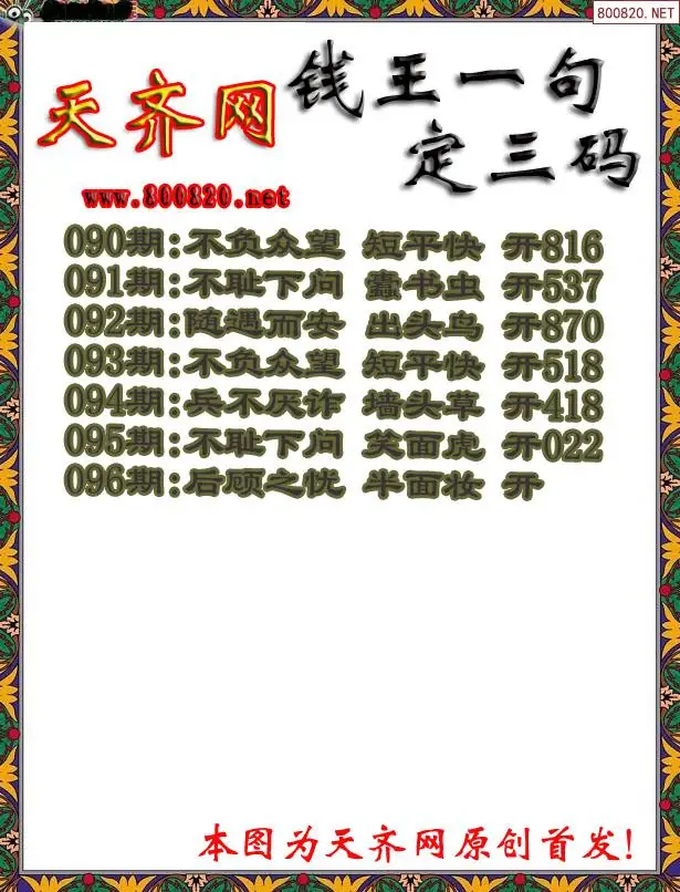 096期钱王3D一句定三码字图谜