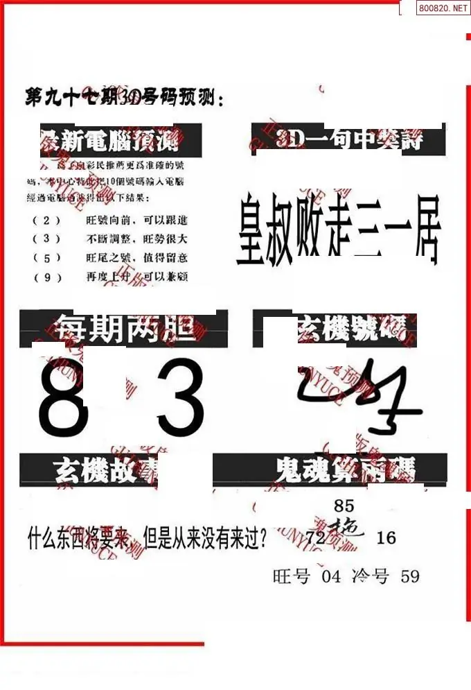 鬼魂图26097期一句中奖诗+鬼魂预测图迷