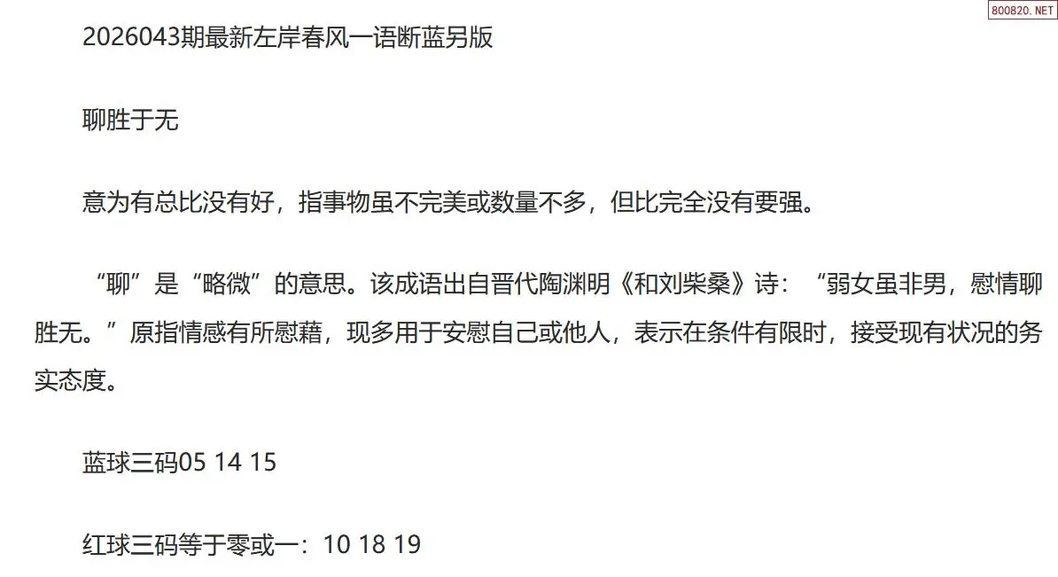 双色球26年043期左岸春风一语断蓝球(另版)