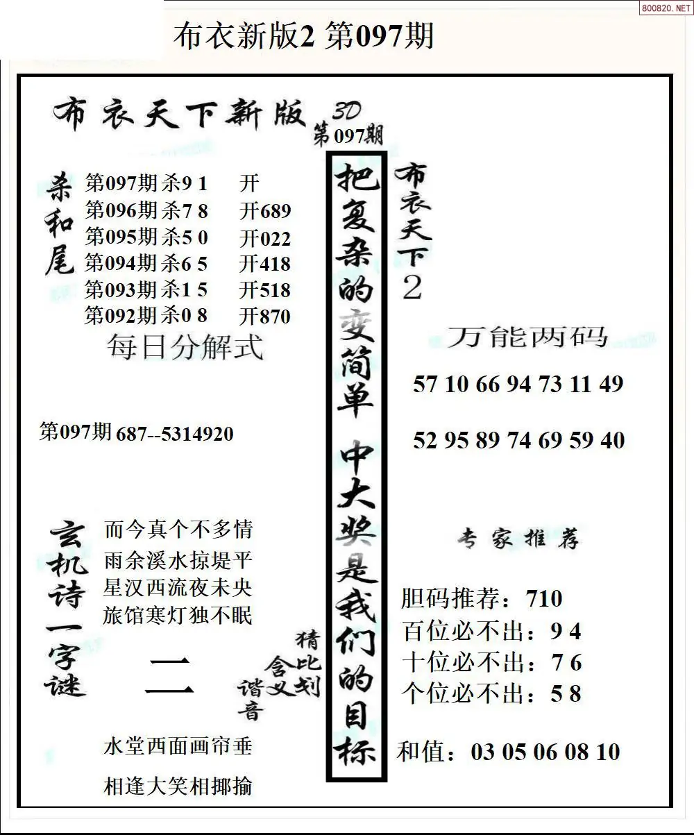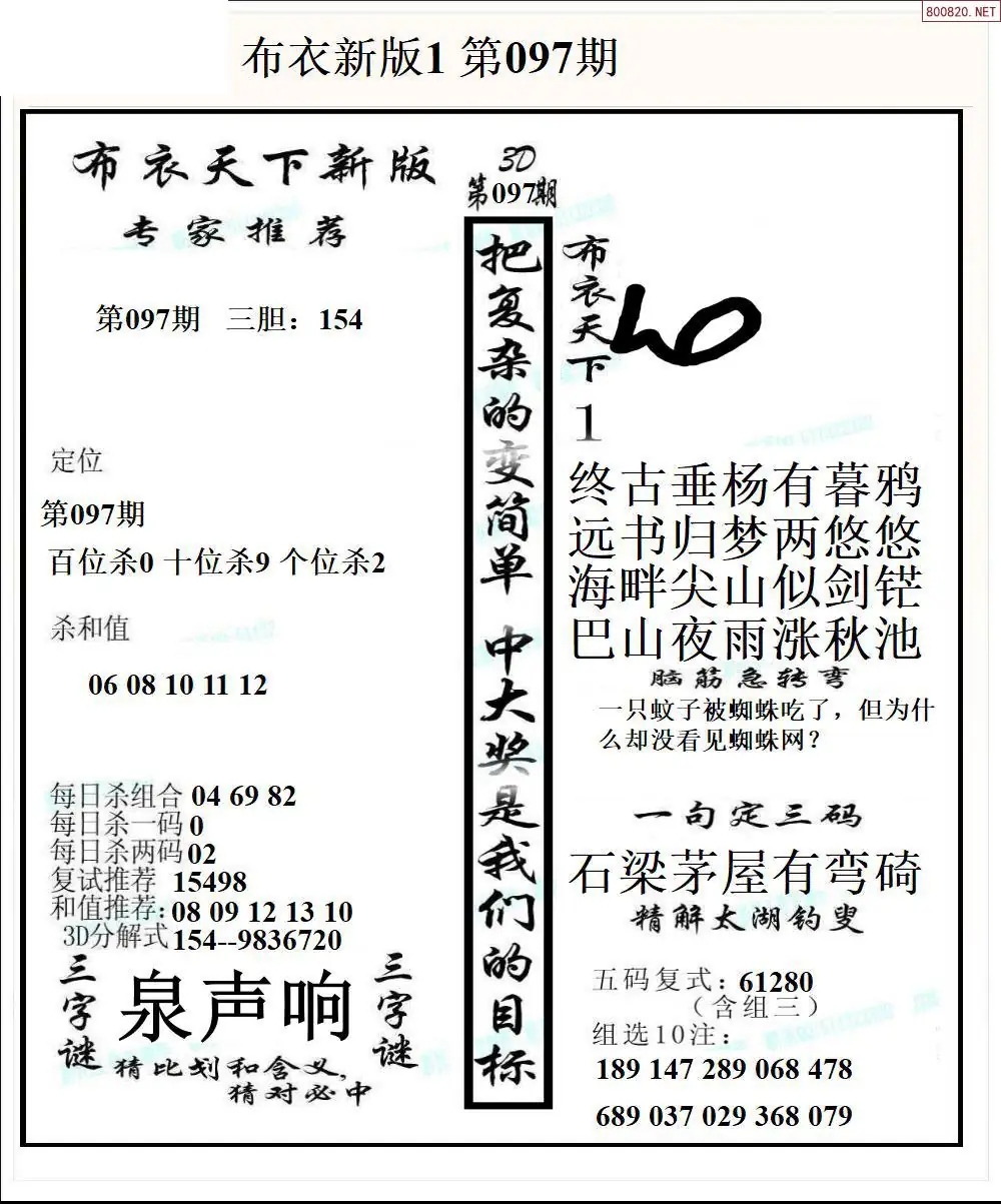 26097期新版3d布衣天下1234