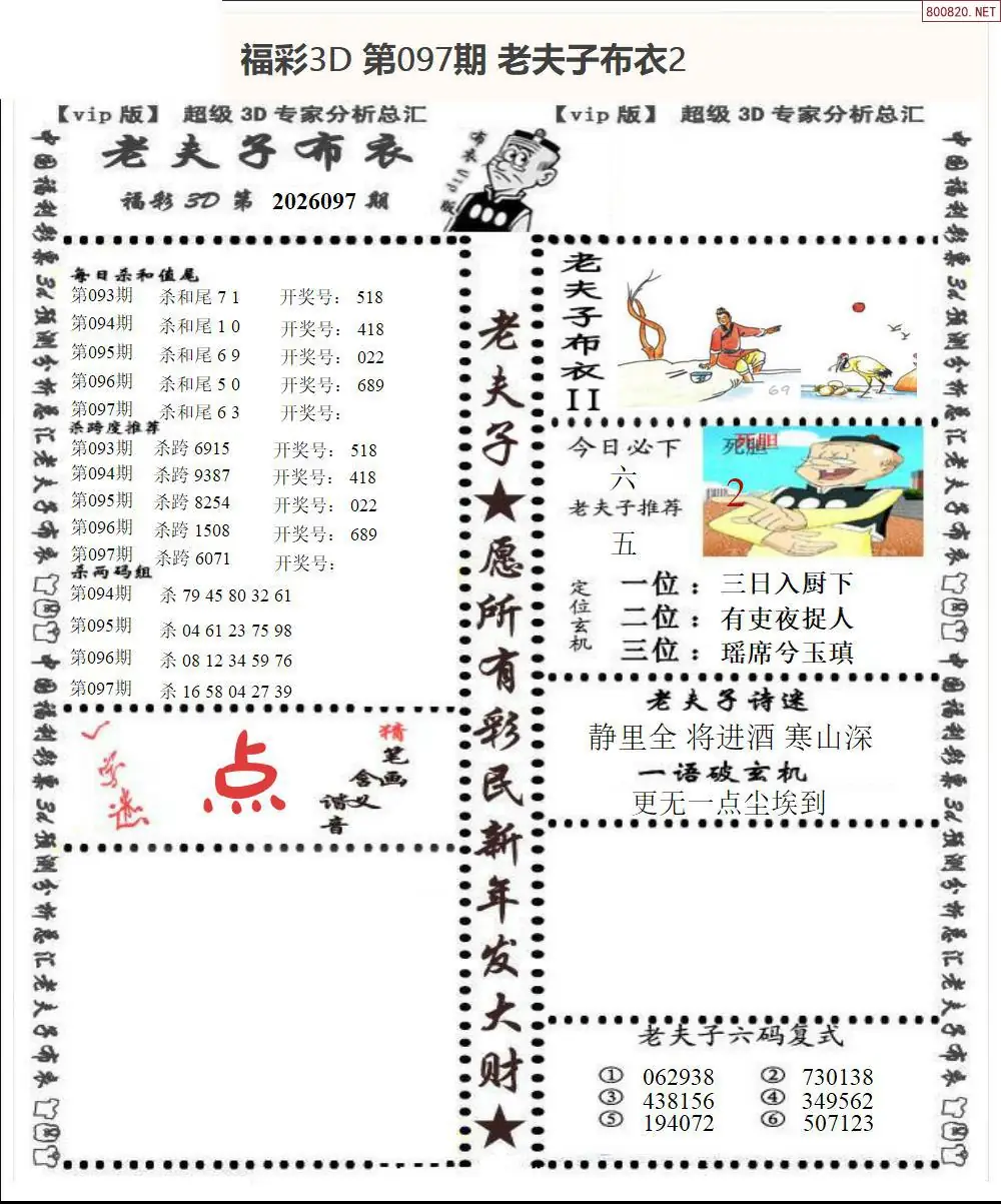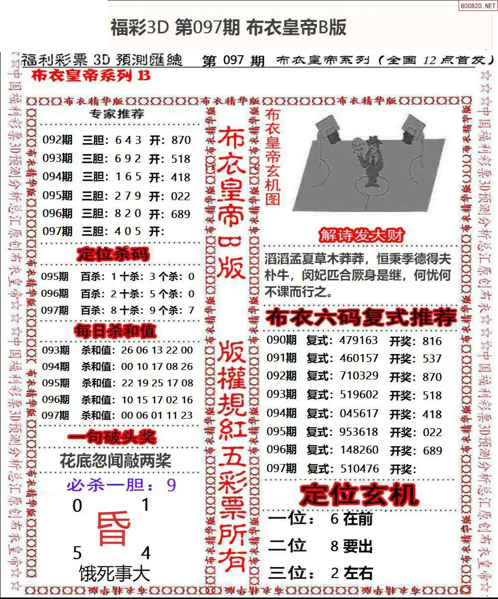 皇帝图26097期布衣皇帝+老夫子布衣3d图谜