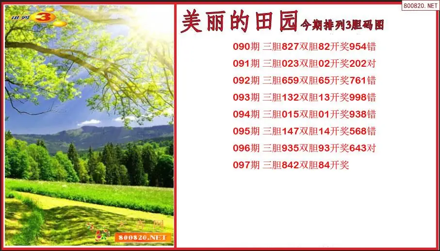 美丽的田园2026097期今期排列3胆码图(原创)