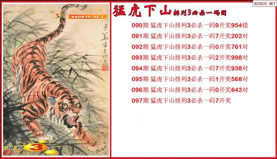 猛虎下山2026097期排列3必杀一码图(原创)