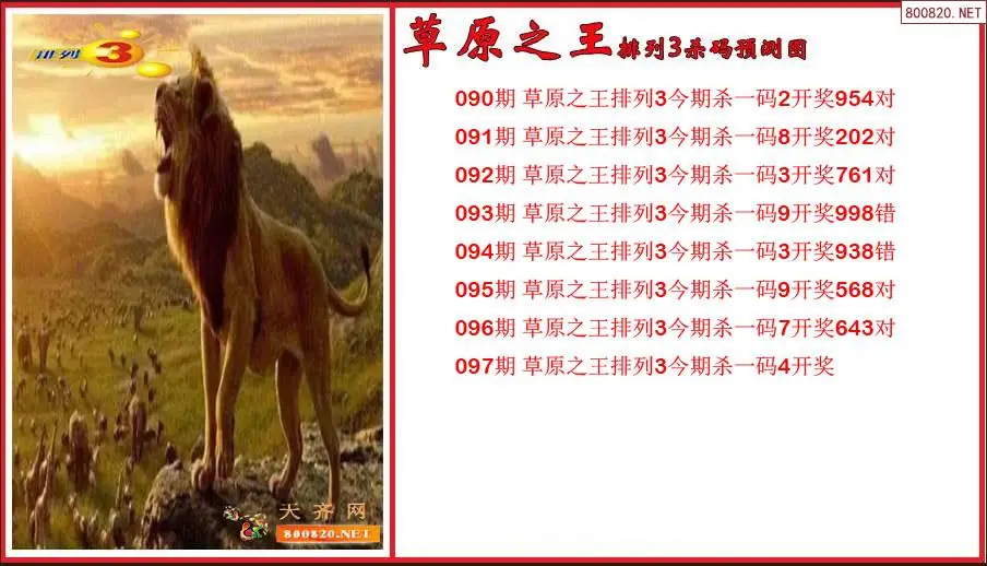 草原之王2026097期排列3杀号预测图(原创)