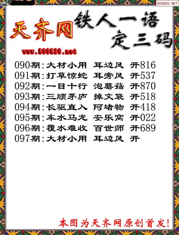 097期3D铁人一句定三码字图谜
