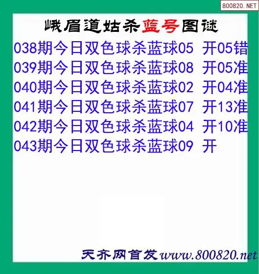 双色球2026043期峨眉道姑杀蓝图迷