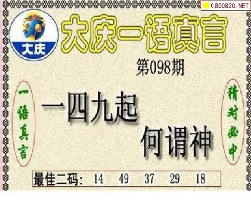 大庆图26098期大庆五码+一语真言黑胆3d图谜