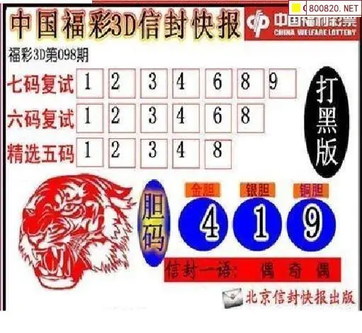 信封图26098期信封快报3d打黑版图谜
