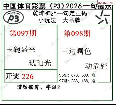 2 26098期体彩P3胆码图迷汇总(天齐网