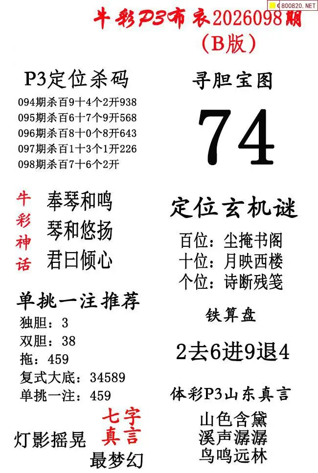 牛彩体彩P3布衣2026年098期AB版图谜(精华版)