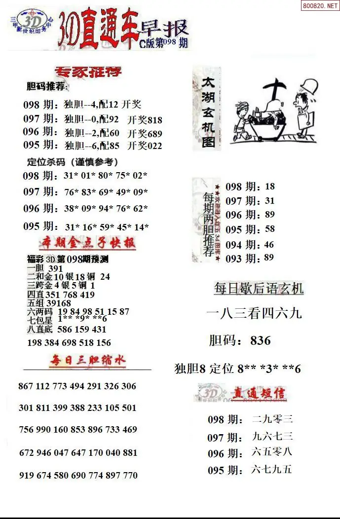 26年098期福彩3D直通车早报ABCD版