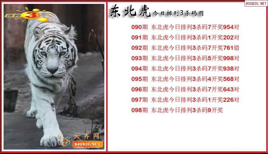 2026098期东北虎排列3通杀一码图(原创)