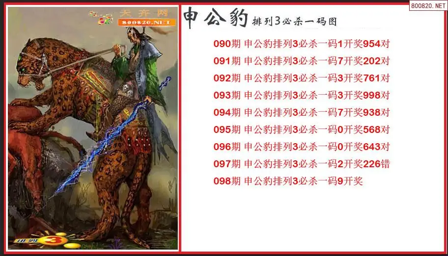 2026098期申公豹排列3必杀一码图(原创)
