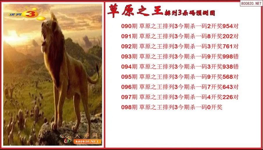 草原之王2026098期排列3杀号预测图(原创)