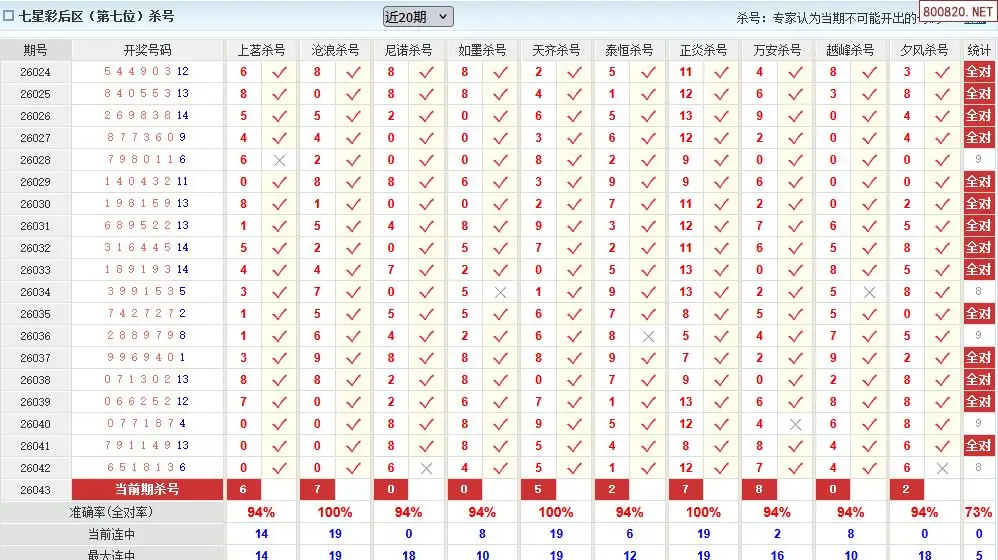 10 澳客七星彩043期十大专家杀五位