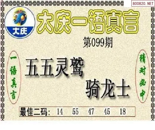 大庆图26099期大庆五码+一语真言黑胆3d图谜