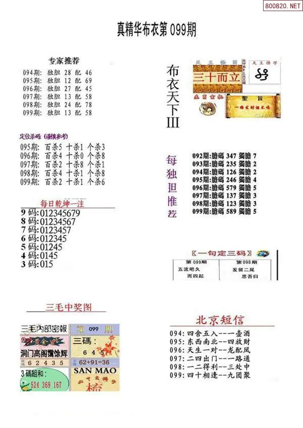2026年099期3d图谜汇总(五)