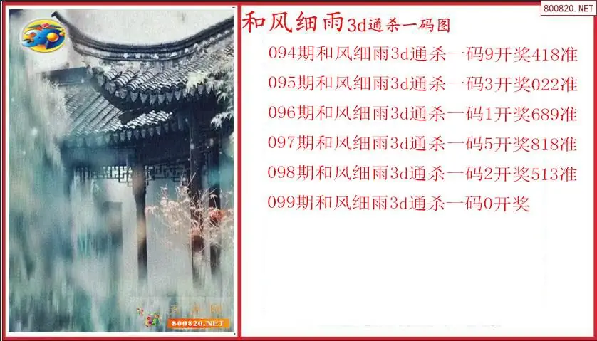 和风细雨2026099期3D通杀一码图(原创)
