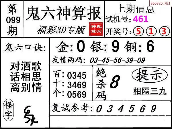 鬼六图26099期鬼六神算报+鬼六胆码图迷