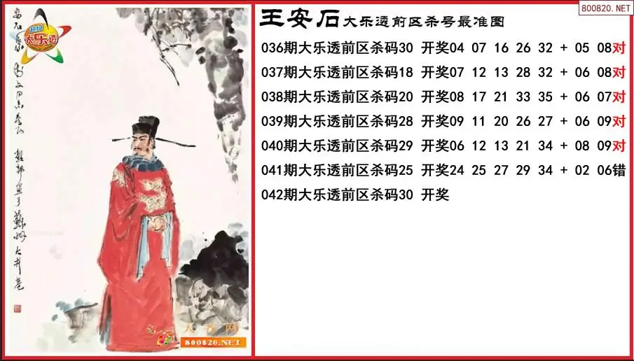 王安石2026042期大乐透前区杀号最准图-原创