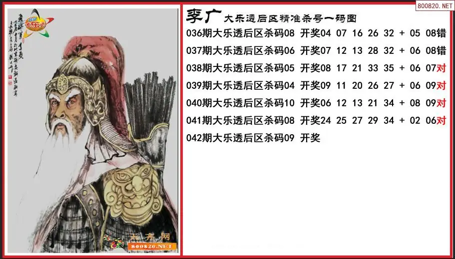 李广2026042期大乐透后区精准杀号一码图-原创