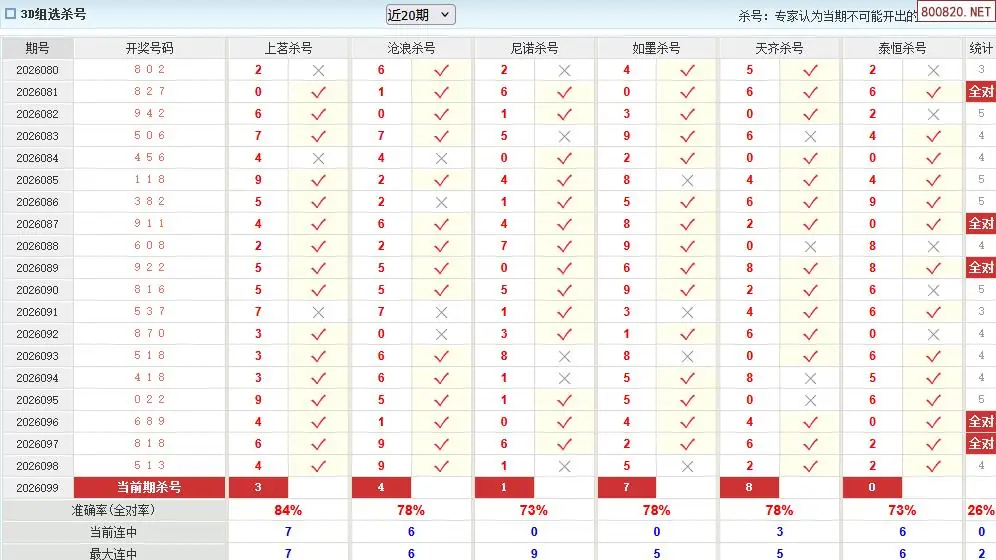 福彩3d26年099期澳客专家杀组选号码