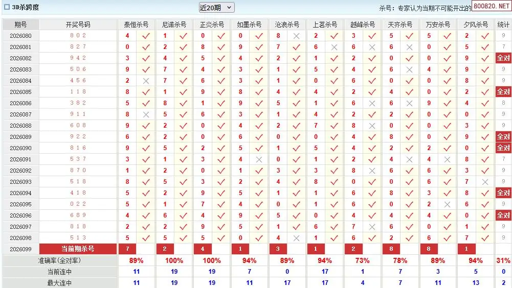 福彩3d26年099期澳客专家杀跨度