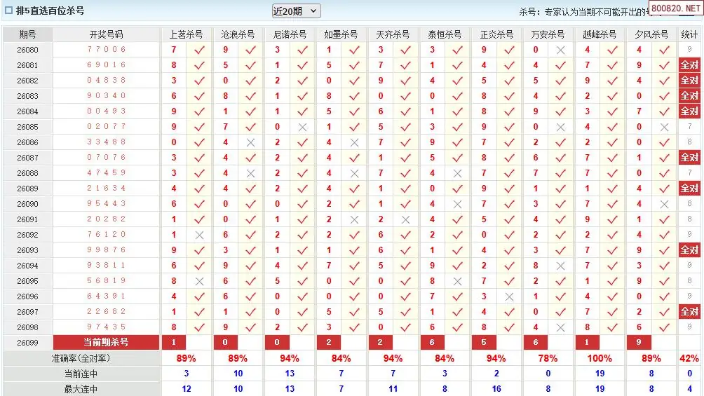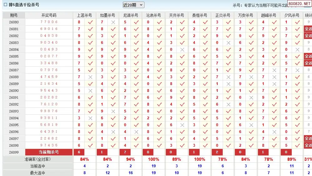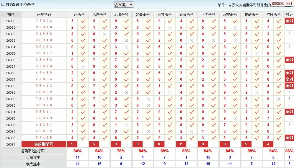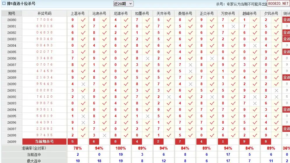 澳客彩票26年体彩P5099期十大大专家杀号