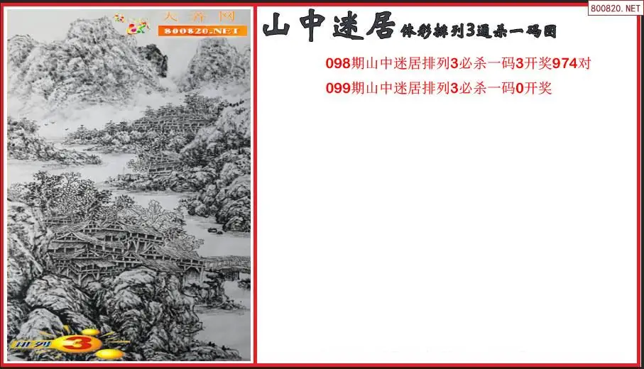 2026099期山中迷居体彩排列3通杀一码图(原创)
