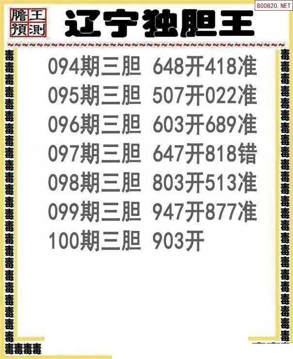26100期辽宁独胆王三胆图谜