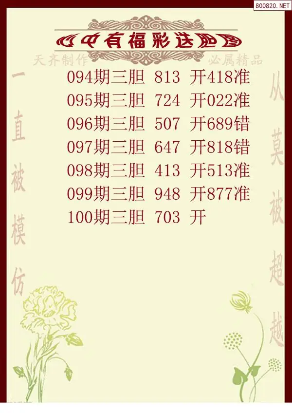 2026年100期心中有福福彩送胆图谜(天齐网原创)