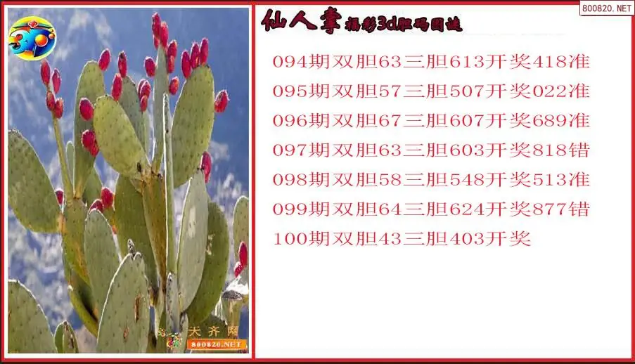 仙人掌2026100期福彩3d胆码图谜(原创)