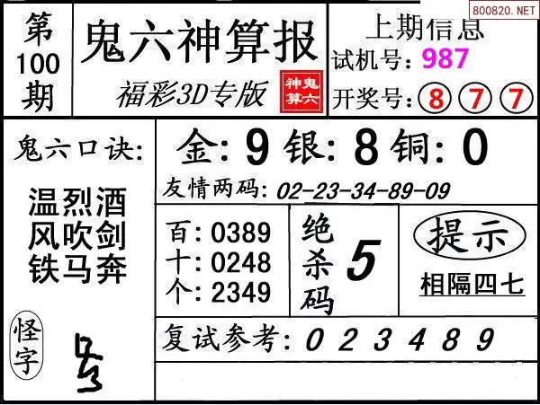 鬼六图26100期鬼六神算报+鬼六胆码图迷