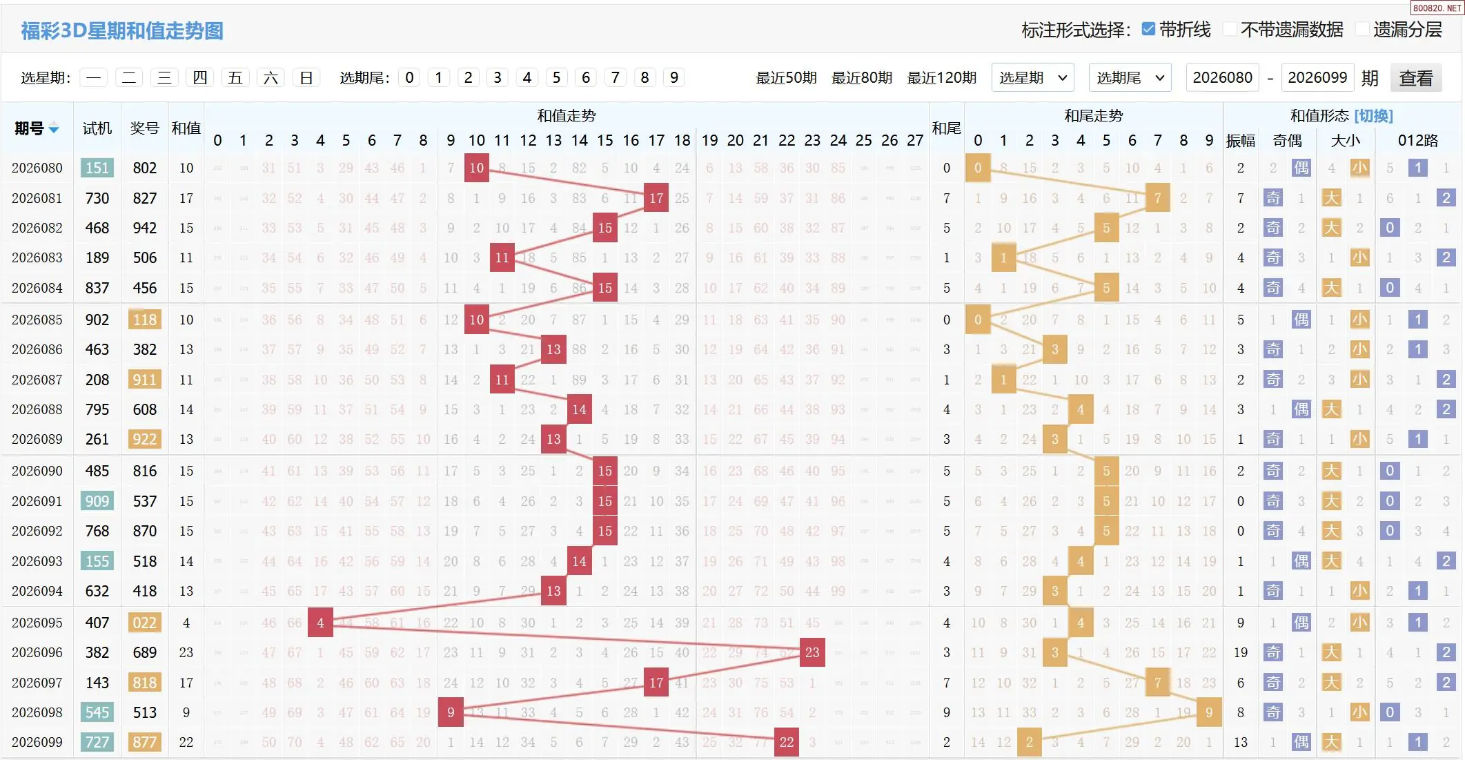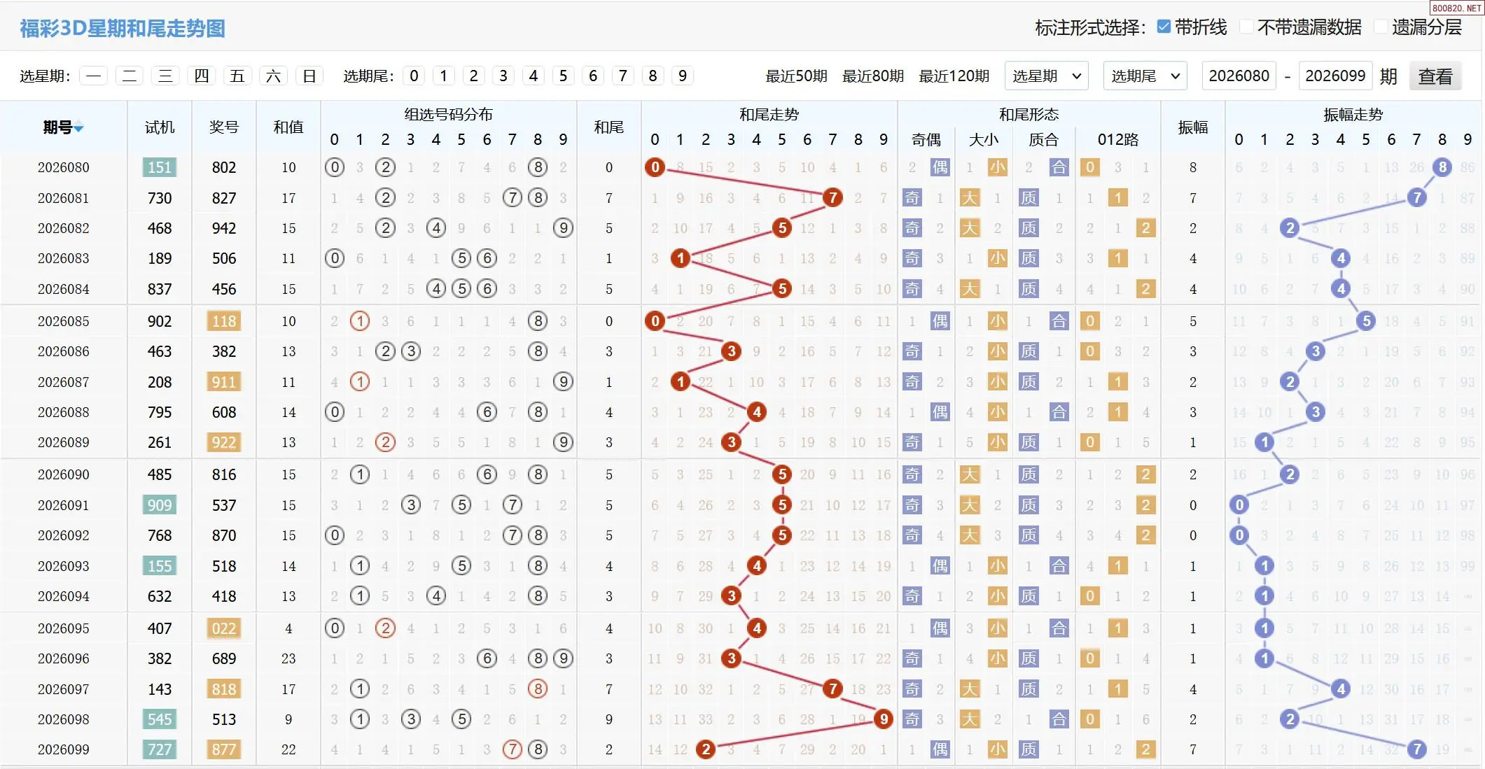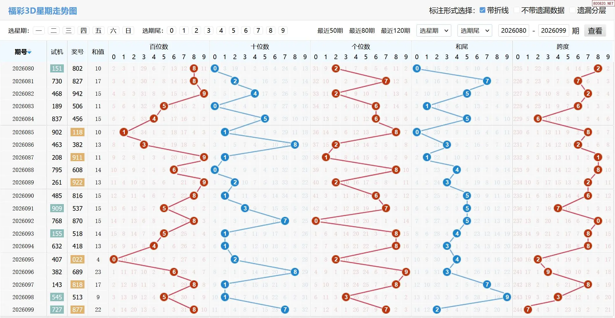 2026100期福彩3D基本走势图如下: