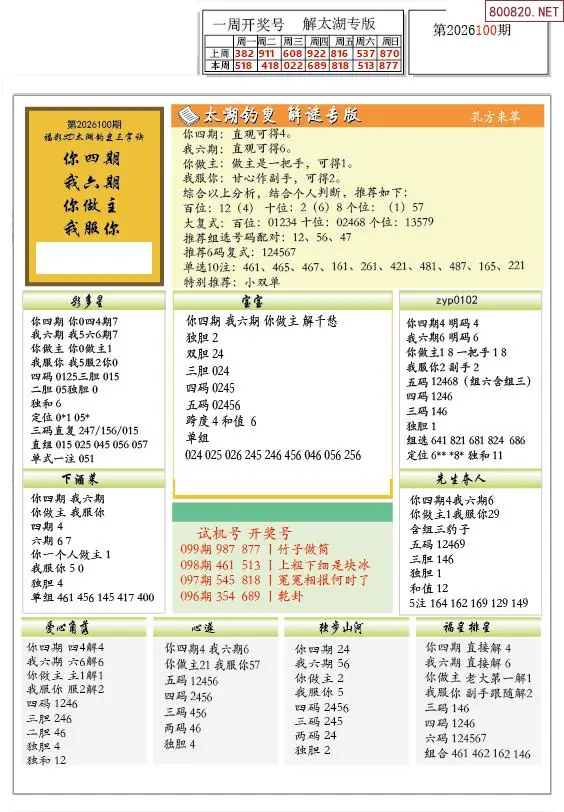 2 26年100期解太湖3d字图迷汇总彩报