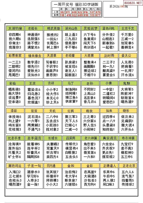 12 2026年100期3d字谜图谜总汇