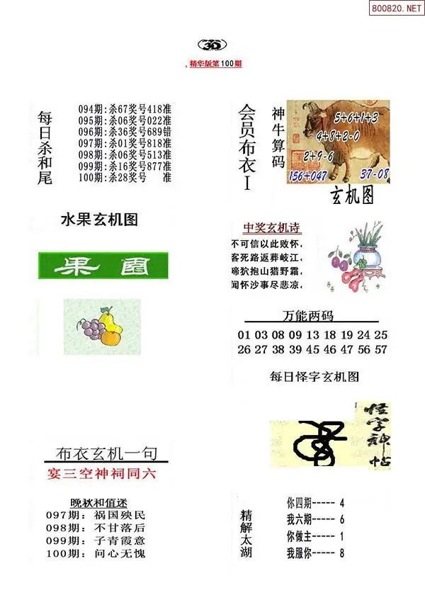 26年100期解太湖3d字图迷汇总彩报