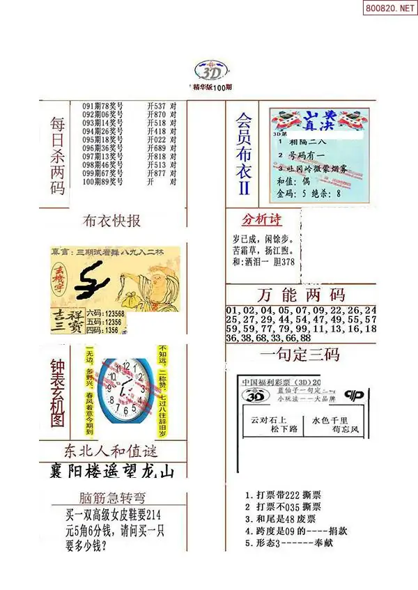 2026年100期精华布衣3D全图